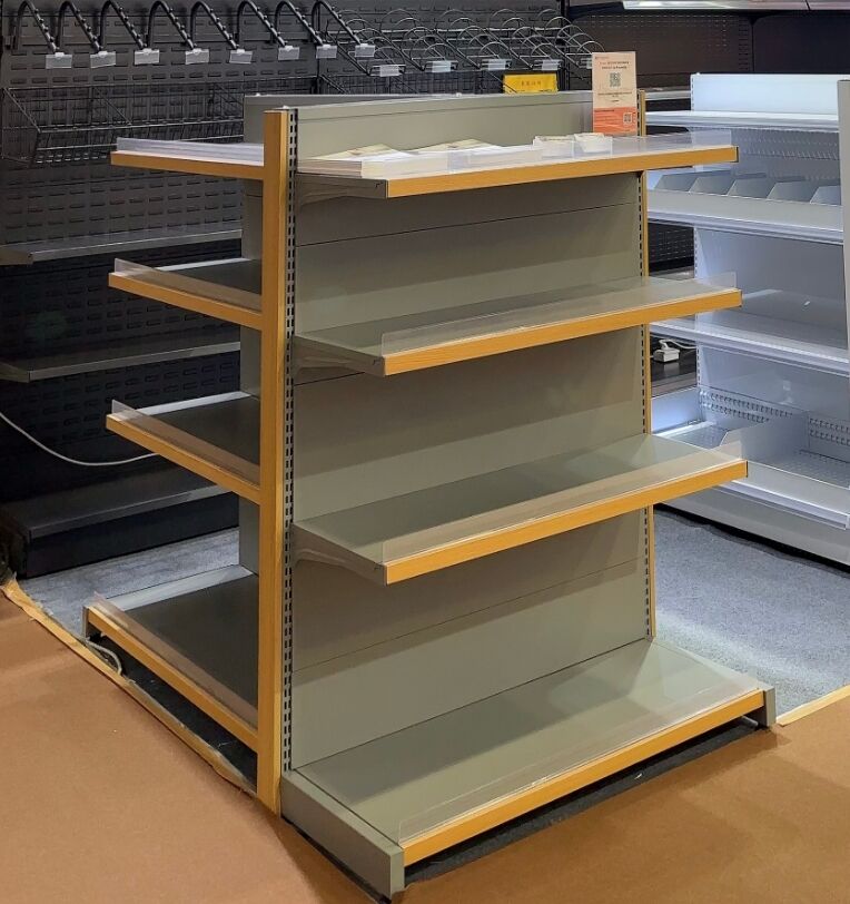 This supermarket shelf is a new model from Suzhou Yuanda Commercial Equipment Co., Ltd. It features a double-sided island design and presents a modern minimalist style overall. The core features are as follows: